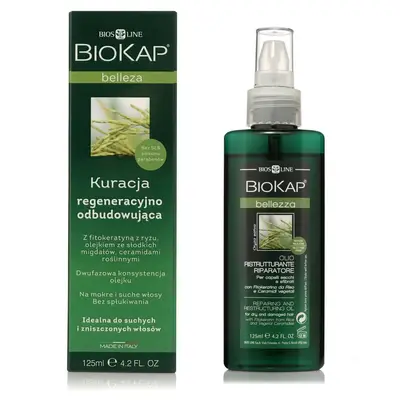 Kuracja odbudowująco – naprawcza Biokap to coś więcej niż odżywka! To najwyższej klasy preparat odżywczy do włosów, który intensywnie naprawia i odbudowuje włosy suche, osłabione i zniszczone, zabezpieczając je dodatkowo przez działaniem szkodliwych substancji i czynników zewnętrznych oraz nieestetycznym rozdwajaniem końcówek.
