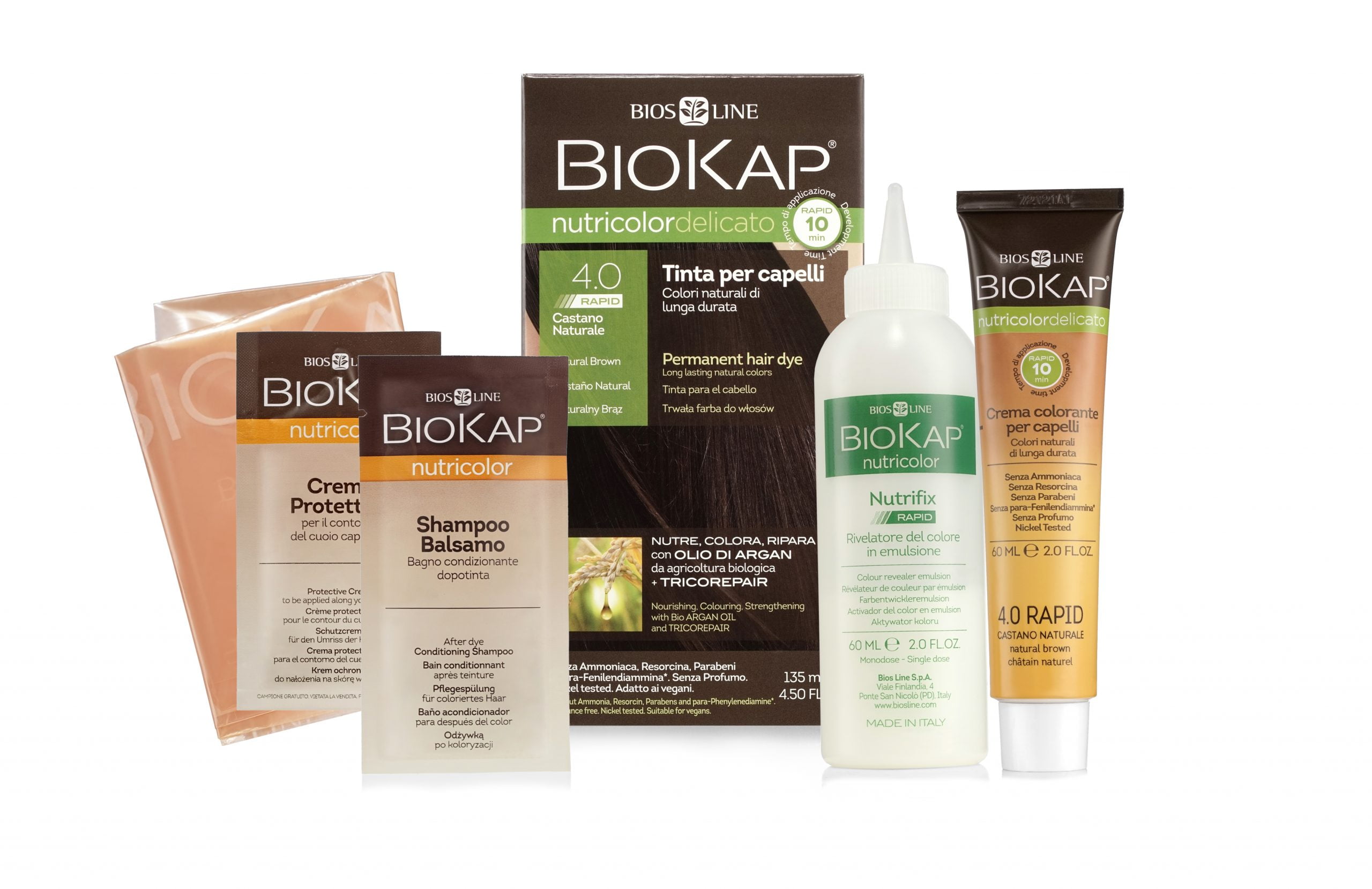 W składzie farb Biokap odnajdziemy bogactwo protein, dzięki temu włosy są zawsze doskonale odżywione i nawilżone. Farby Biokap zawierają także opatentowany kompleks Lactosafe wyodrębniony z kwasów owocowych: kwas mleczny z trzciny cukrowej, kwas cytrynowy z owoców cytrusowych, kwas winowy z winogron, kwas jabłkowy z porzeczek. Ale to nie wszystko – w składzie znajduje się także wyciąg z wierzby, który stanowi naturalny filtr UV. A dla pełnego bezpieczeństwa w składzie Nutricolor znajdziemy olejek arganowy, który działa przeciwzapalnie i łagodzi objawy alergii. To kompleksowe połączenie zamknięte w unikalnej formule TRICOREPAIR – białko ryżowe, wyciąg z wierzby i lipofilowe kwasy owocowe.