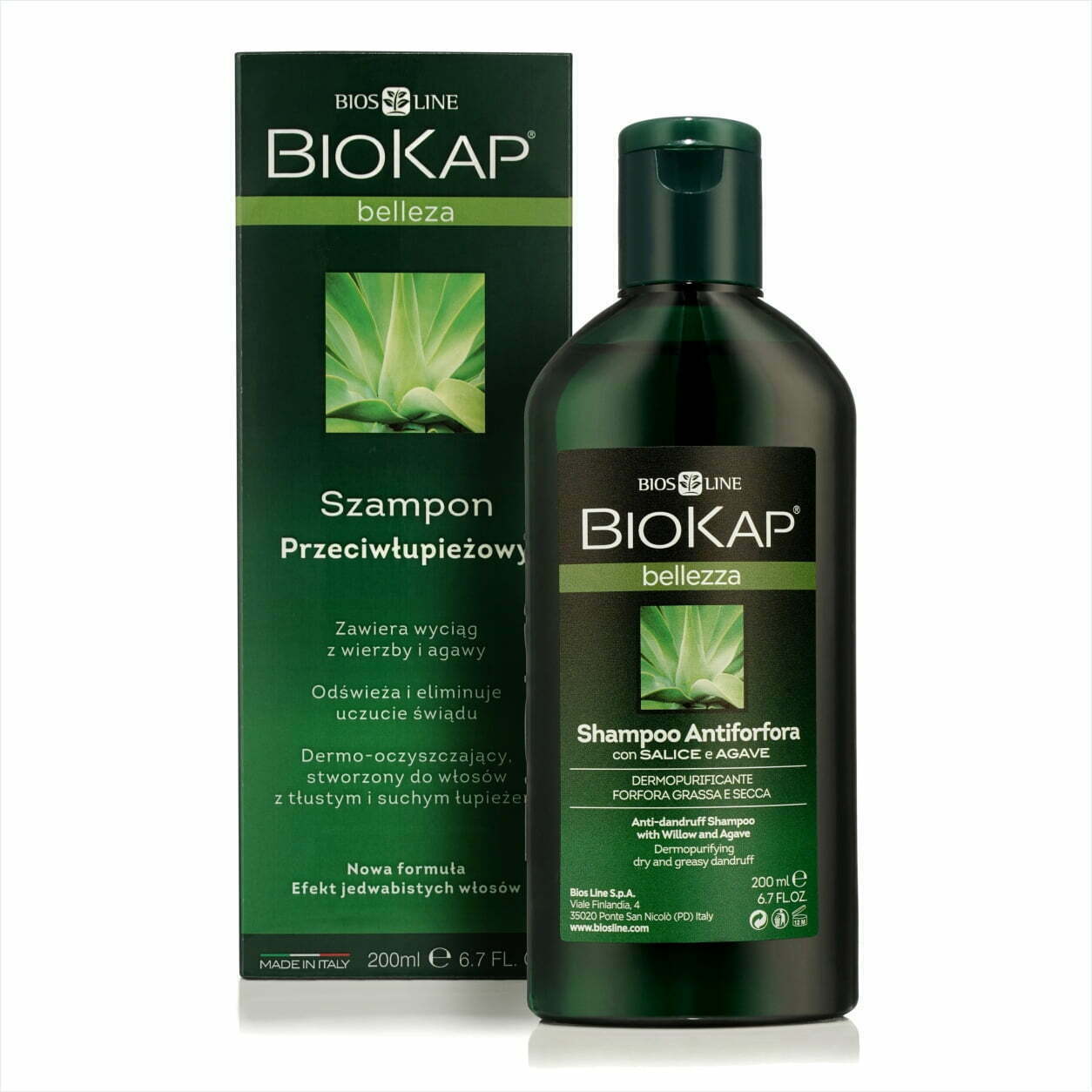 Ten dermo-oczyszczający szampon efektywnie zwalcza problem łupieżu, respektując naturalne fizjologiczne właściwości skóry głowy. Odpowiedni zarówno dla tłustego jak i suchego łupieżu. Zawiera wyciąg z wierzby, który wspomaga regulowanie łoju skórnego. Ekstrakt z kocanki i olejków eterycznych z upraw ekologicznych drzewa herbacianego i rozmarynu skutecznie myją skórę głowy. Mięta odświeża eliminując uczucie swędzenia. Ekstrakty z ekologicznych upraw kaktusa, czerwonej porzeczki i agawy pozytywnie wpływają na regulacje łoju skórnego. Produkt z wysoką zawartością aktywnych składników naturalnych. Jak w większości produktów Biokap bez parabenów, silikonów, emulgatorów PEG, SLS. Testowany pod względem niklu. Produkt nietestowany na zwierzętach.